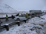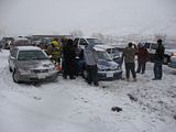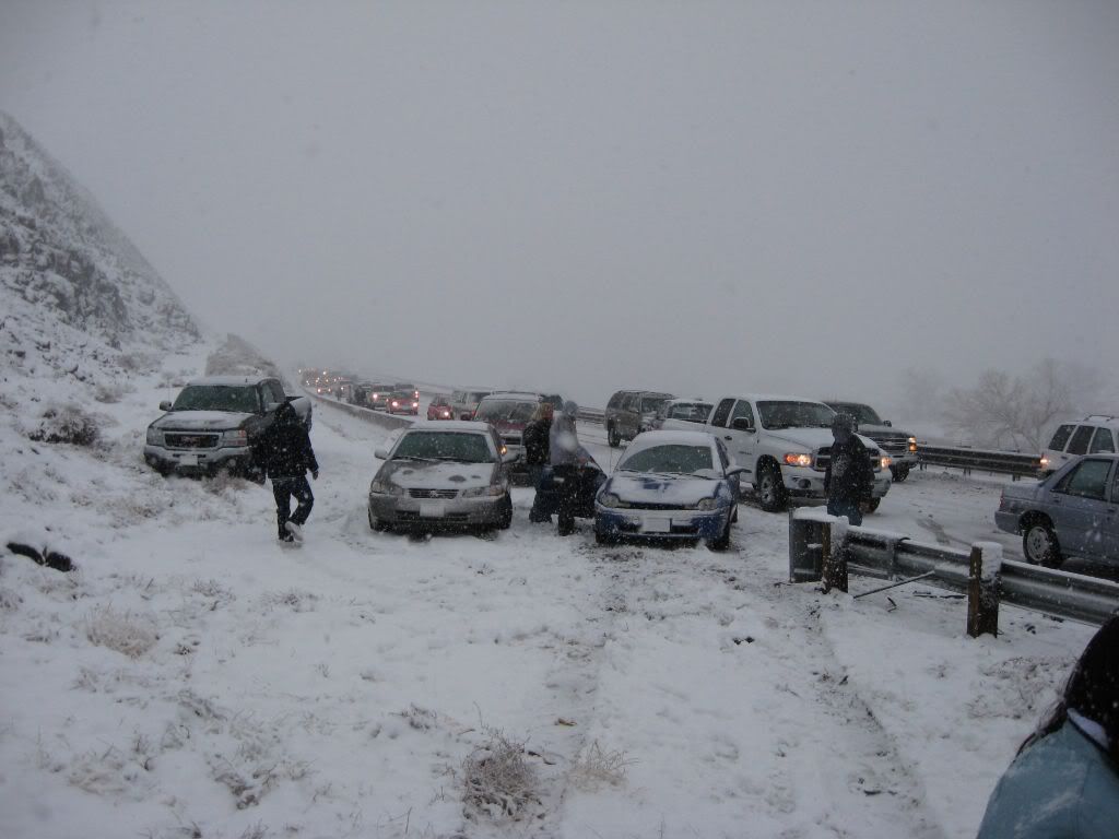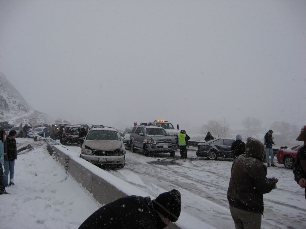 That is a 17 car pileup. I was driving behind the black hatchback. The minivan and the Pontiac were behind me. This stretch of road was going downhill and there was a curve at the bottom. The below image shows how poor visibility was at the time of the pileup. What's funny was after the crash, visibility cleared up as shown in some of the other pictures.